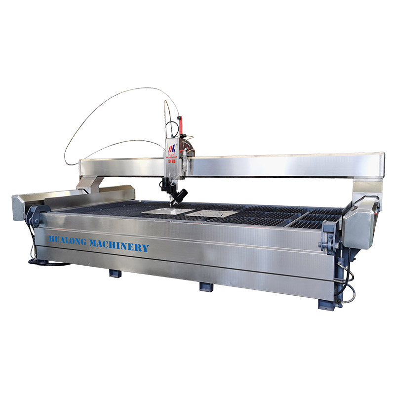 5軸水刀切割機專門用于切割大理石和花崗巖,可補償10°切割角度。它是一種坡口切割機。由于水刀切割是一種柔性切割方式,因此傳統三軸水刀切割機切割后的產品截面會有一定的傾斜度。為保證垂直切割斷面的精度,必須降低切割速度。而我們的5軸水刀切割機可以通過補償切割角度來保證垂直切割截面的精度,而不會降低切割速度。這樣就可以用來切割拼花石材,拼花地板不需要再打磨,省時省力。
