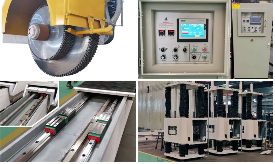 龍門多片組合鋸 : 采用金剛石工具和高速切割技術,適用于高效切割各種厚度的石材板材(厚度如17毫米,20毫米,30mm等)。